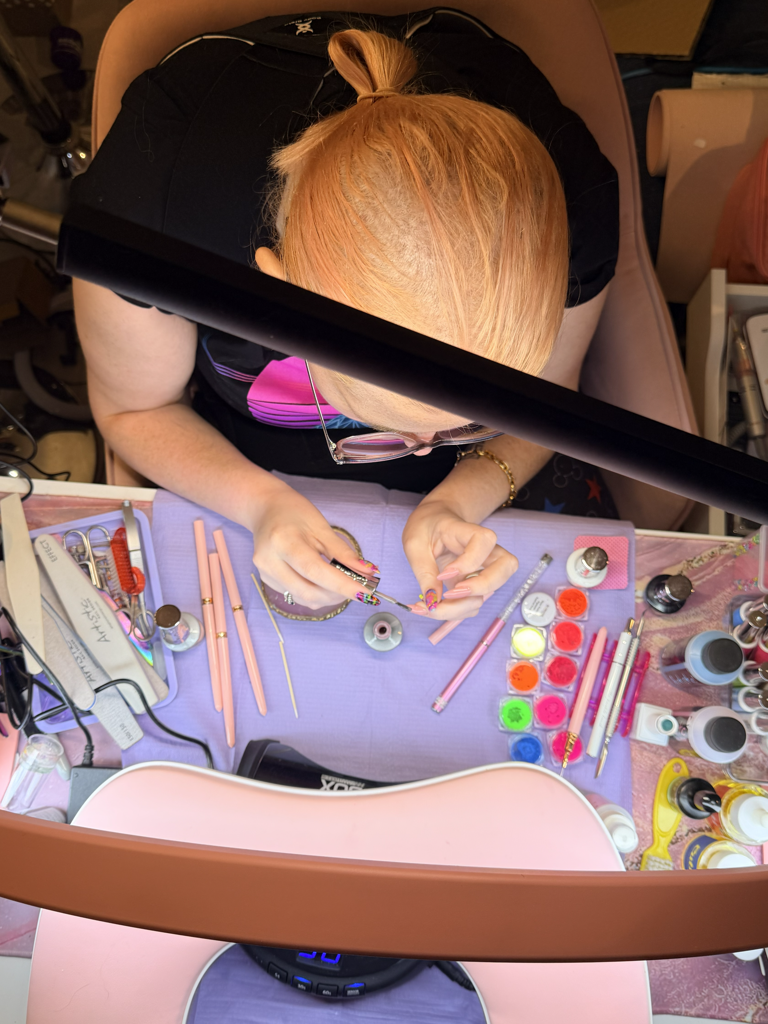 Currently, I work in a small, tailored space in the living area of my parents’ kitchen, but we’ve been preparing to build and set up a salon space in the shed.